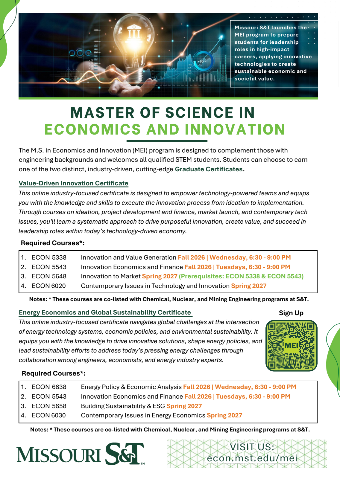 The Economics Department offers two (2) industry-focused graduate certificate programs: